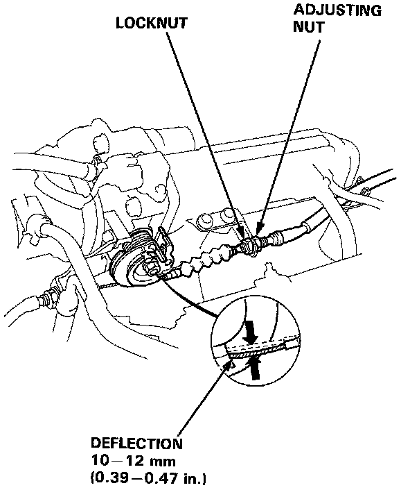 3. Check Cable free play at the Throttle Linkage. Cable deflection should be 10 - 12 mm (9.39 - 0.47 in.)