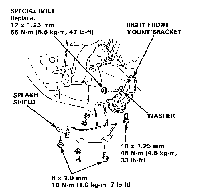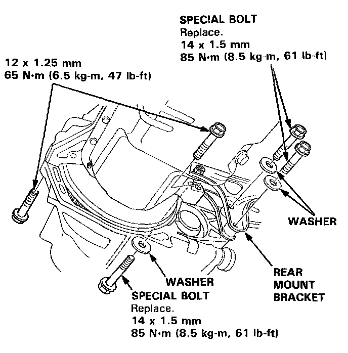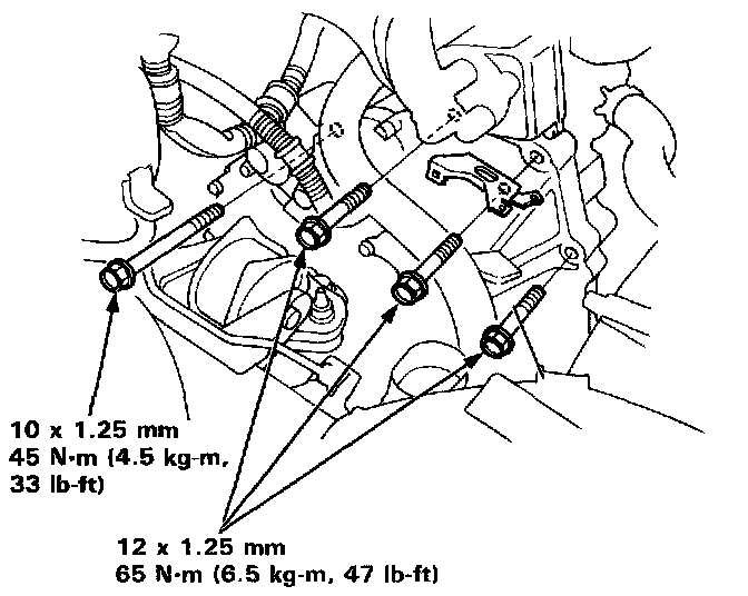 5. Install the transmission mounting bolts and rear mount bracket bolts.