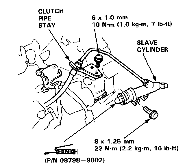 18. Install the slave cylinder, then install the clutch pipe stay.