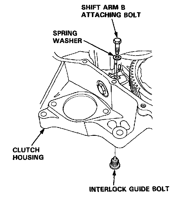 DISASSEMBLY1. Remove the interlock guide bolt from under the clutch housing.