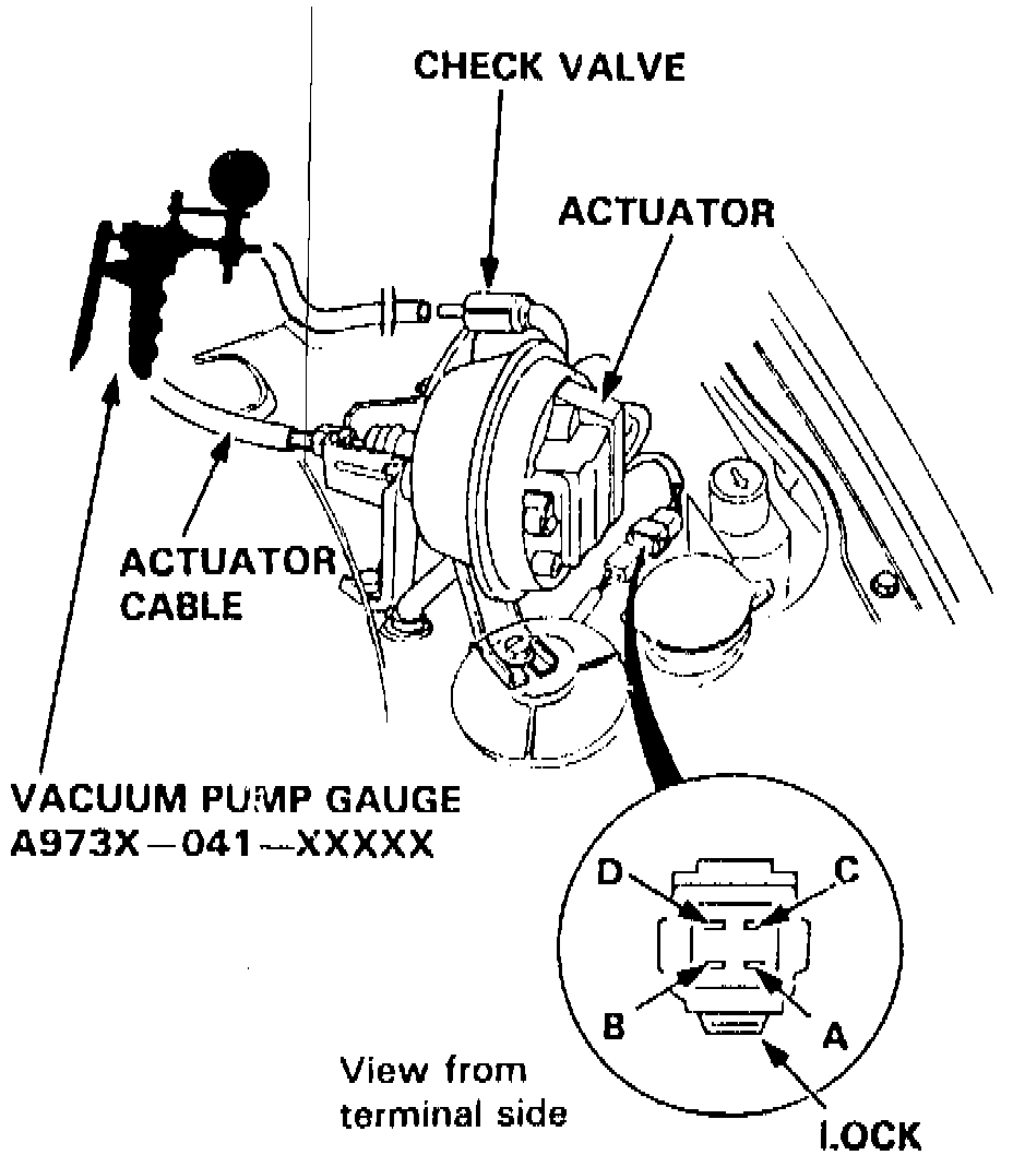 4. Actuator rod should pull in completely. If rod pulls in only part way or not at all, check for leaking vacuum line or defective solenoid.