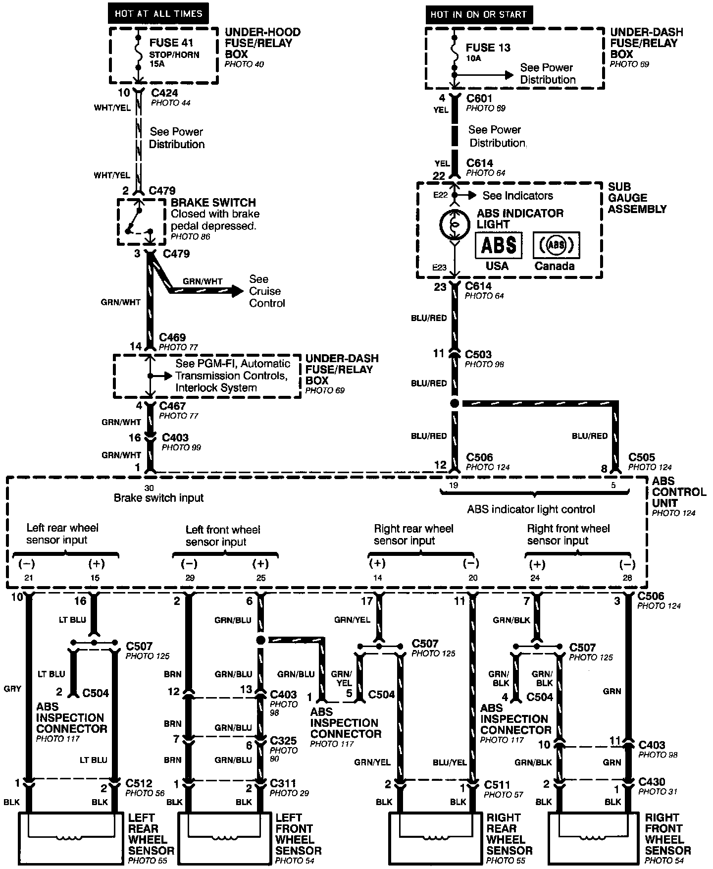 Anti-lock Brake System (ABS) - Brake Switch, Indicator, And Wheel Speed Sensor Inputs: