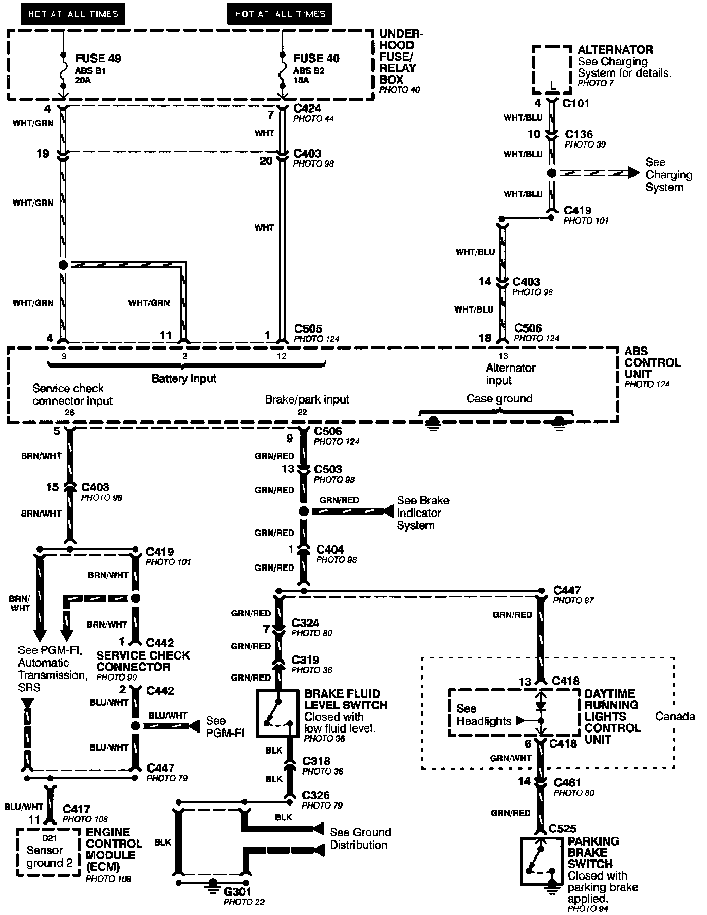 Anti-lock Brake System (ABS) - Power, Brake Fluid Switch, And Parking Brake Switch Inputs: