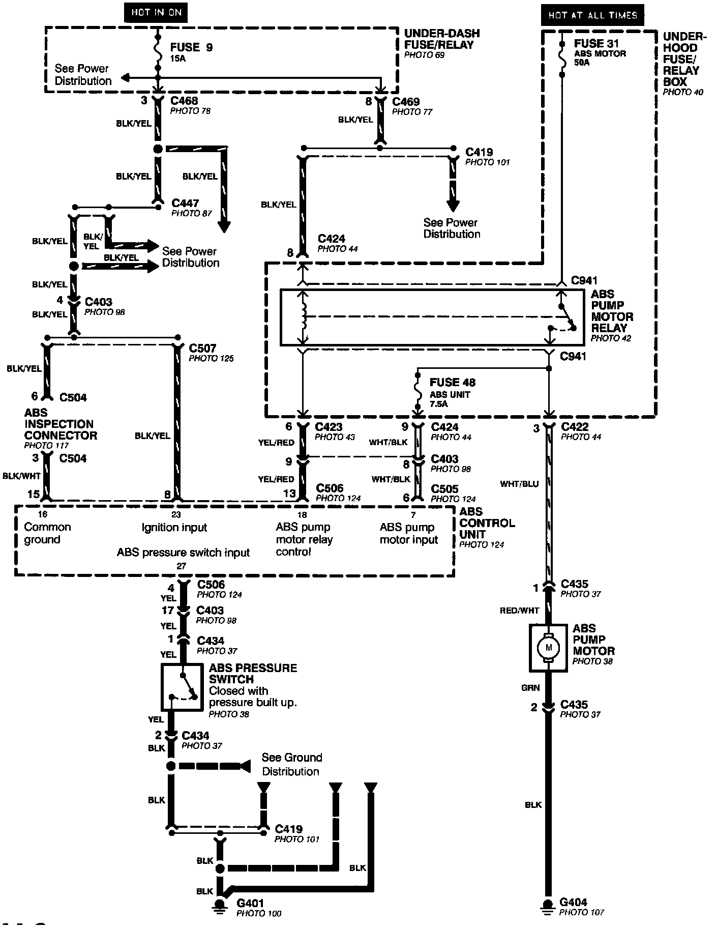 Anti-lock Brake System (ABS) - Motor, Pressure Switch, And Ignition Inputs: