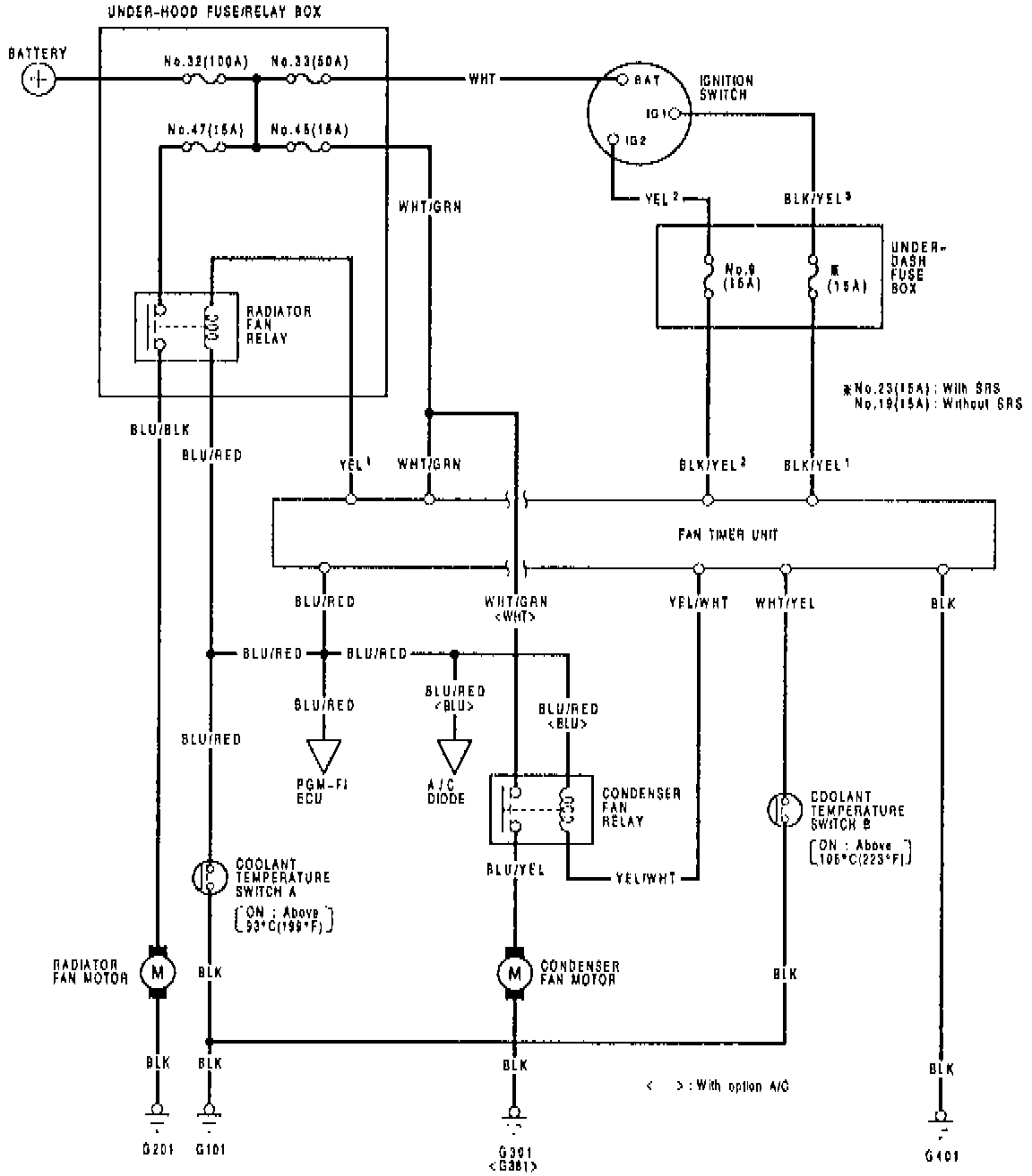 Fig. 8 Cooling Fan Wiring Circuit With A/C: