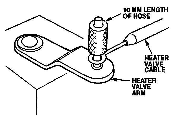Got a vehicle in your shop that blows cold air from the heater or warm air from the A/C ? The problem could just be the heater valve cable has slipped off the heater valve arm. There's a real easy fix for this problem. Slip the heater valve cable back onto the heater valve arm. Then cut yourself a 10 mm length of 3.5 mm vacuum hose and slide it onto the arm. This holds the cable on the arm nice and snug so it won't slip off.