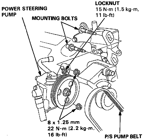 - After installing, adjust the tension of the P/S pump belt.