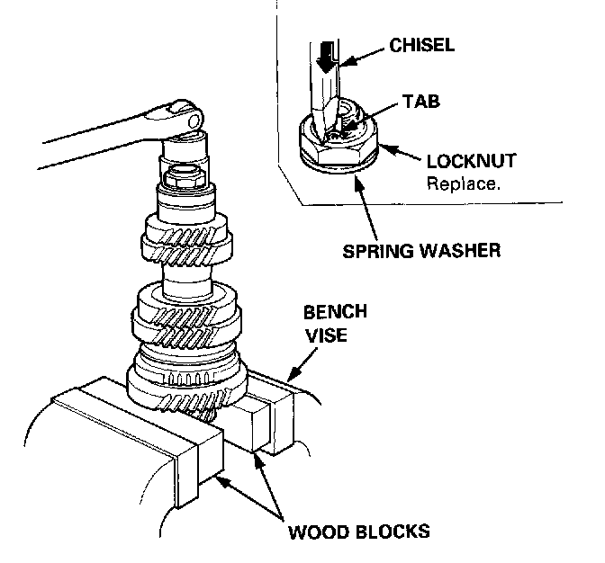 1. Securely clamp the countershaft assembly in a bench vise with wood blocks.