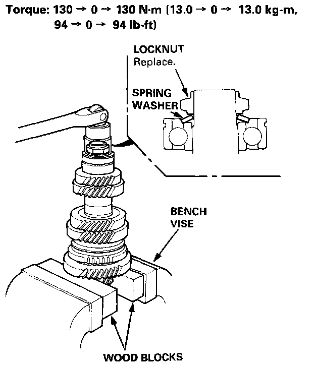 9. Tighten the new locknut to the correct torque, then stake the locknut tab into the groove.