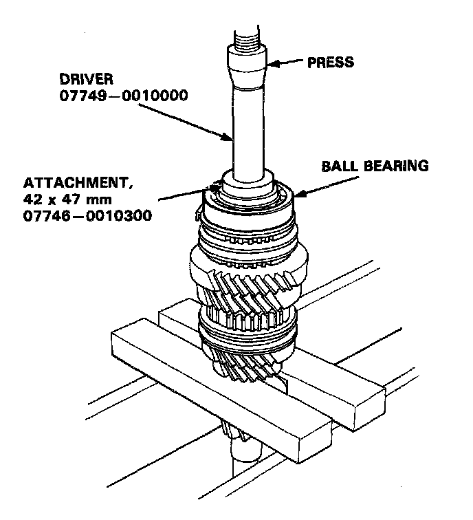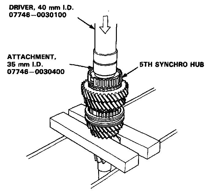 2. Install the 5th synchro hub using the special tools and a press as shown.