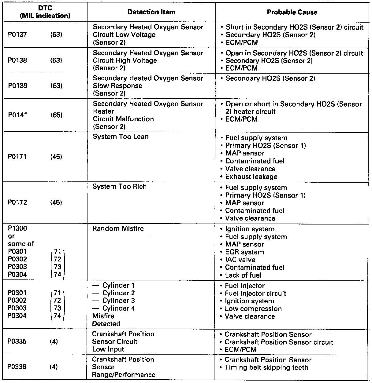 Codes P0137 Thru P0336 (4, 45, 63, 65, 71, 72, 73, 74)