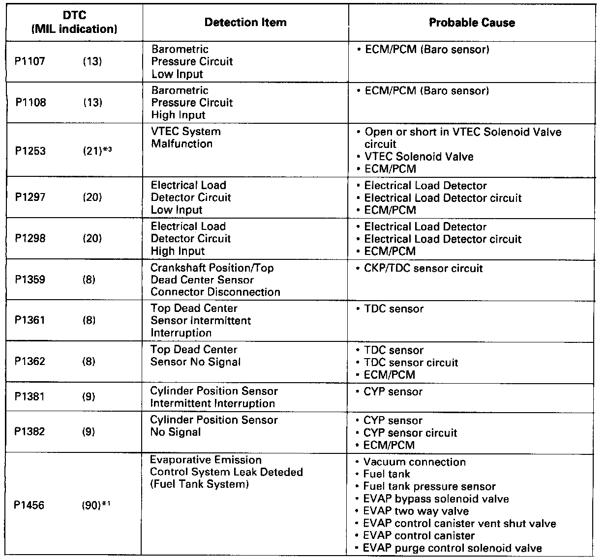 Codes P1107 Thru P1456 (8, 9, 13, 20, 21, 90)