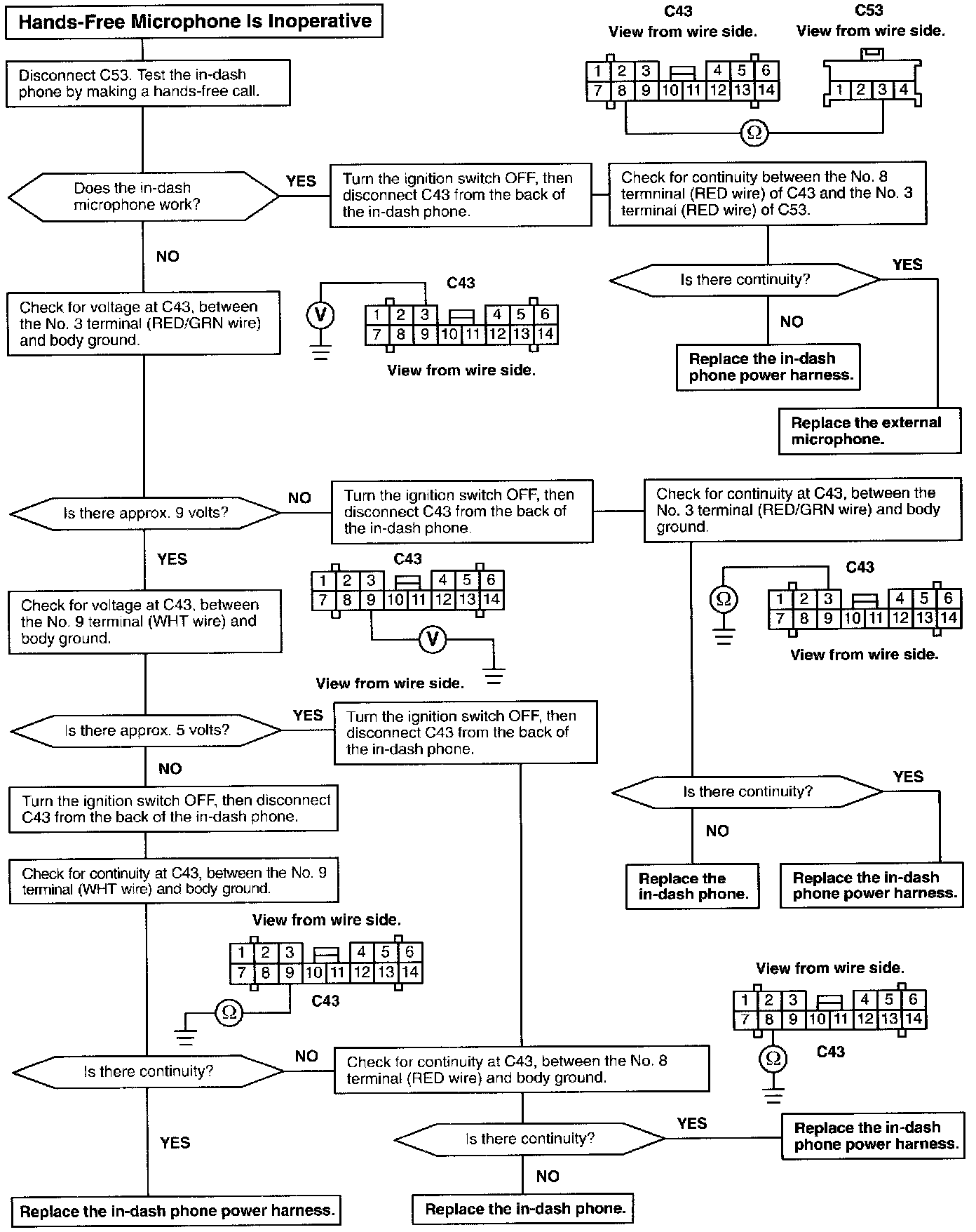 In-dash Cellular Phone - Troubleshooting - Handset-free Microphone Is Inoperative: