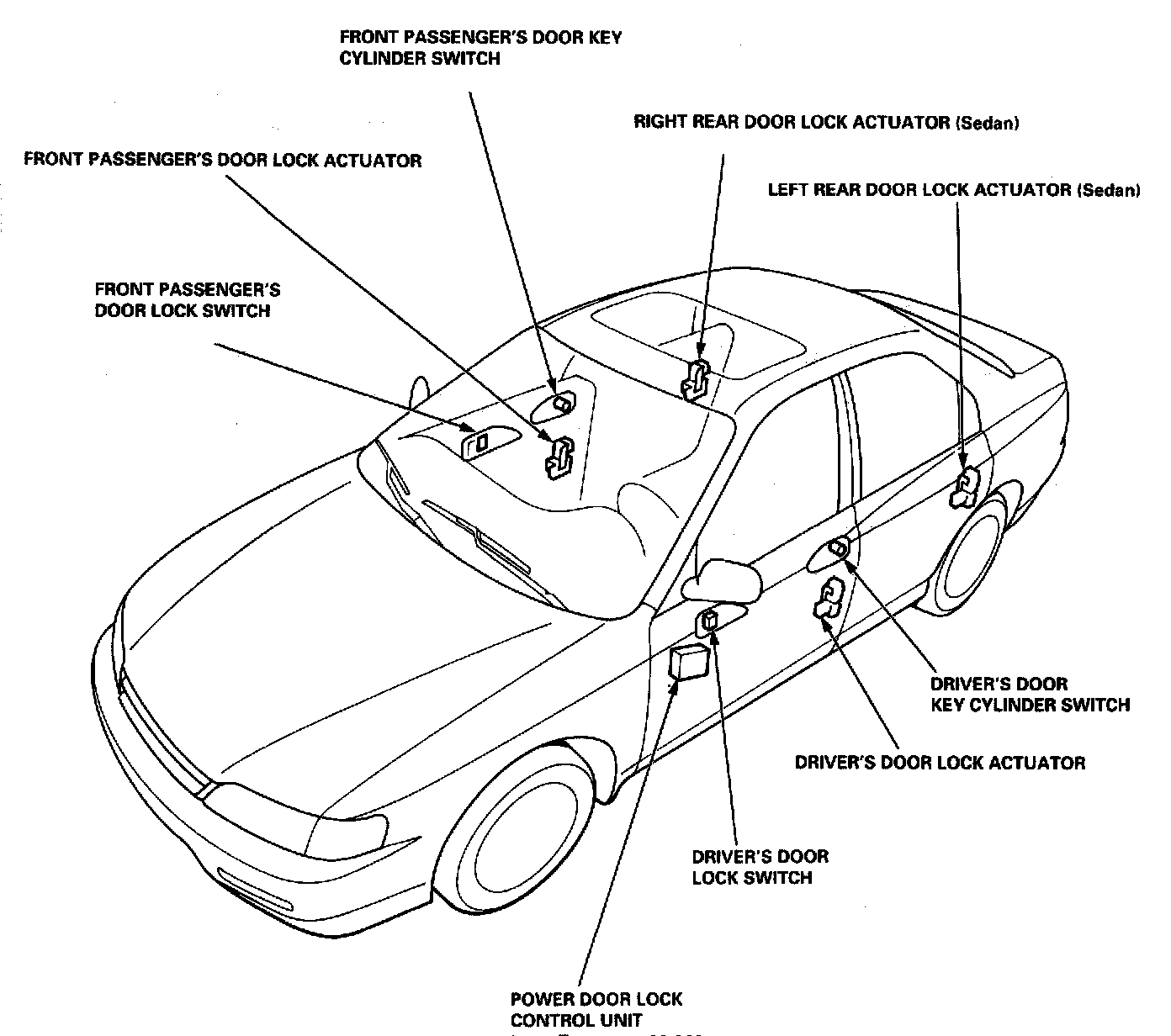 For this model, a new door lock system has been adopted to improve convenience and safety. If the key is inserted into the driver's door key cylinder, turned to the unlock position, and pulled out immediately thereafter, ONLY the driver's door will unlock. However, if the key is kept in the unlock position for one second or more, ALL doors will unlock.