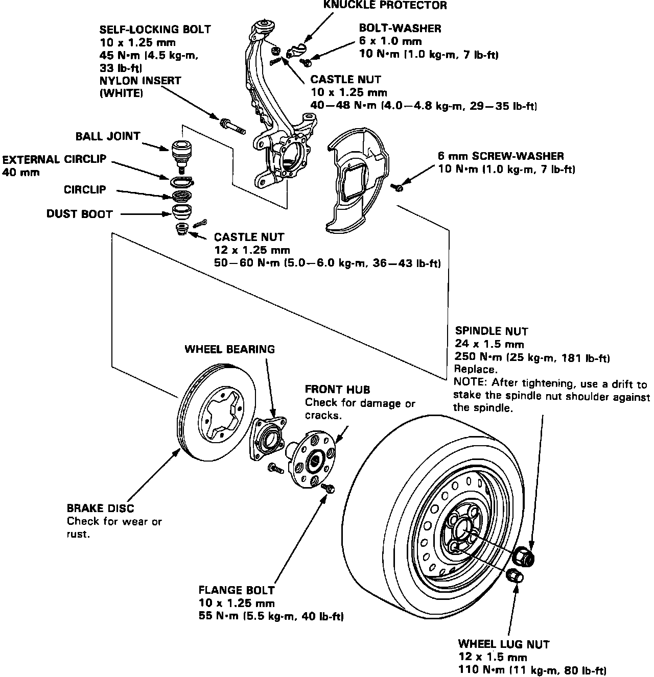 2. With front of car supported on safety stands or rack, remove spindle and lug nuts.