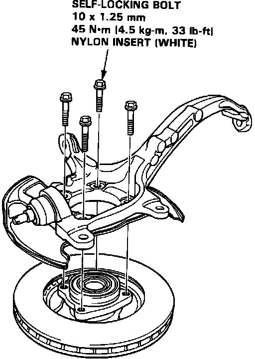 12. Install new brake rotor to hub assembly and torque bolts to specification.