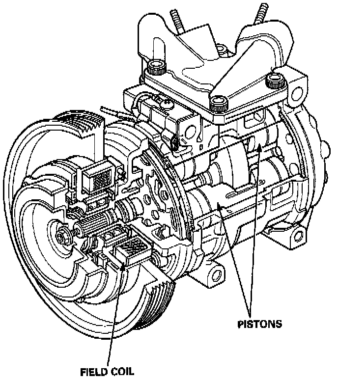 Refer to illustration for visual identification of the Nippondenso A/C compressor installed on this vehicle. Also look for an identification plate on the compressor which may list manufacturer and model number.