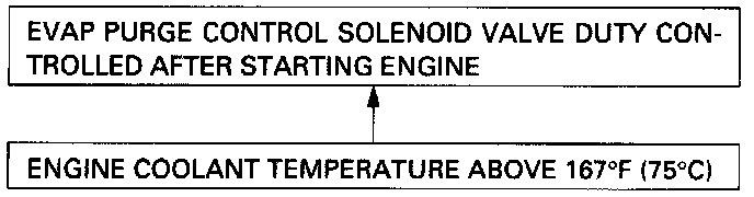 EVAP control canister purging is accomplished by drawing fresh air through the EVAP control canister and into a port on the throttle body. The purging vacuum is controlled by the EVAP purge control solenoid valve.