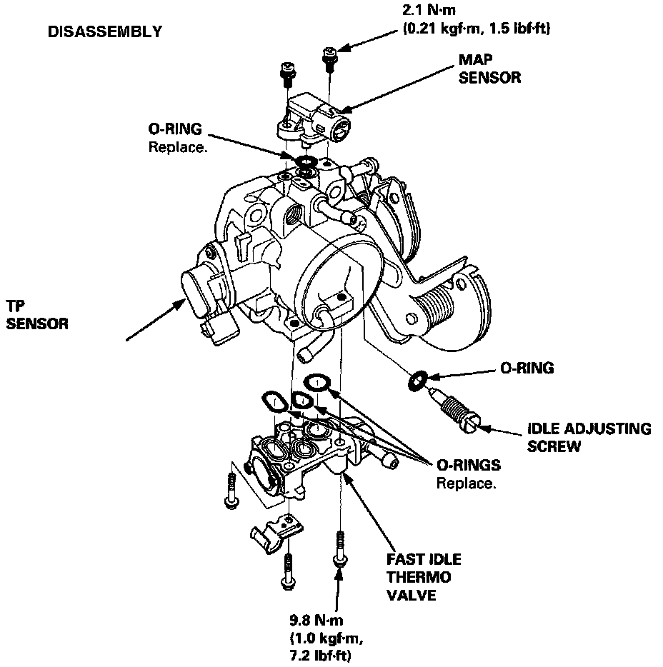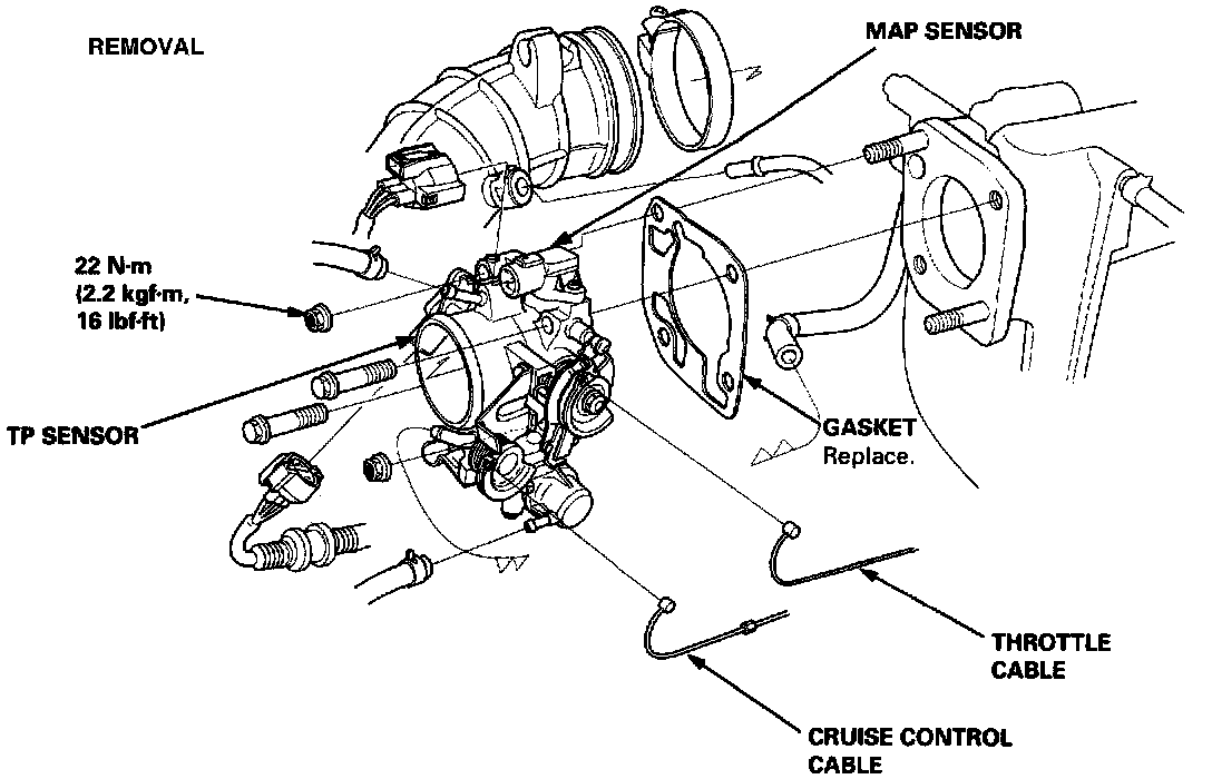 After reassembly, adjust the throttle cable, and cruise control cable.