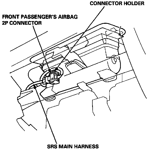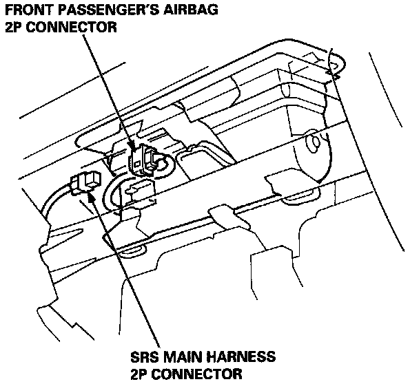 - Disconnect the 2P connector between the front passenger's airbag and SRS main harness.