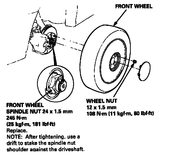 NOTE: Before installing the wheel, clean the mating surfaces of the brake disc and wheel shoulder against the driveshaft.