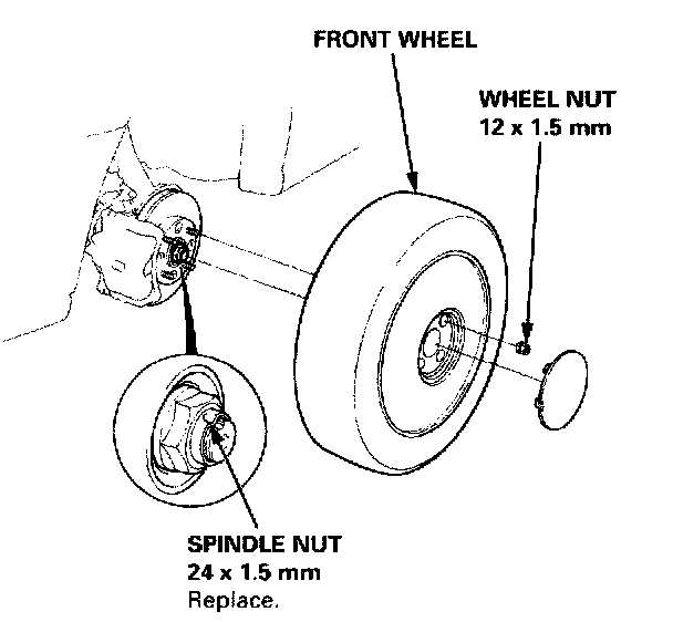 3. Remove the wheel nuts and front wheel.