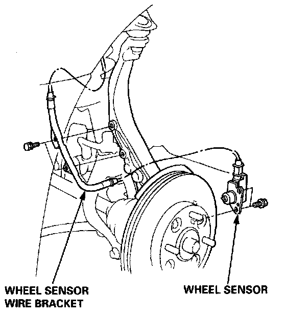 7. Remove the wheel sensor wire bracket, then remove the wheel sensor from the knuckle (for cars with ABS).