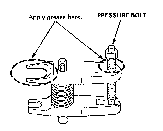 10. Apply grease to the special tool on the areas shown. This will ease installation of the tool and prevent damage to the pressure bolt threads.