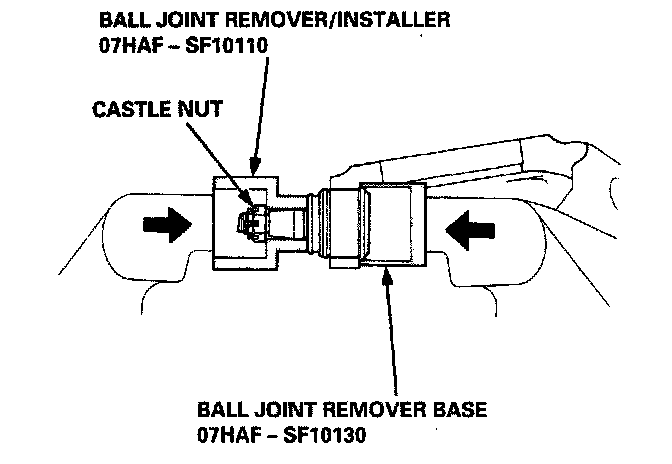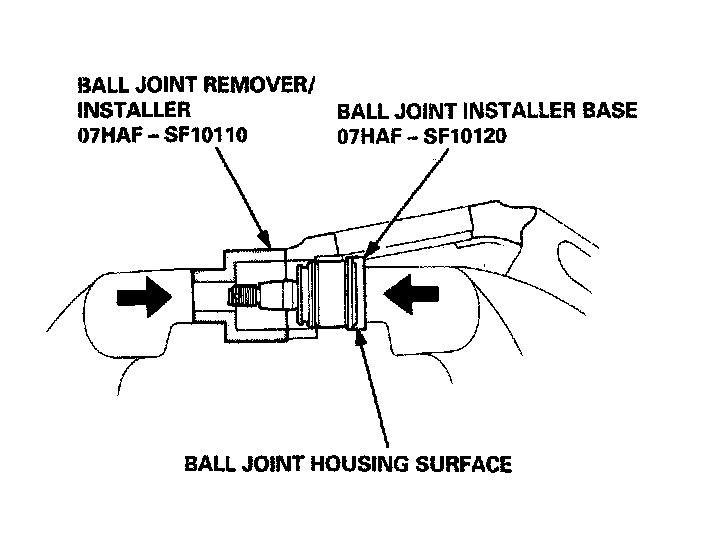 8. Install the special tools over the ball joint as shown, then press the ball joint in.