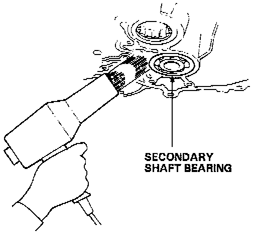 1. Remove the secondary shaft bearing by heating the torque converter housing to 212°F (100°C) with a heat gun, then tap the housing until the bearing falls out.