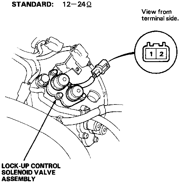 3. Replace the lock-up control solenoid valve assembly if the resistance is out of specification.