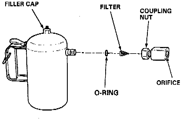 5. The fluid orifice is located behind the filter. Clean it with the pick stored in the bottom of the tank handle, or blow it clean with air. Securely reassemble all parts.