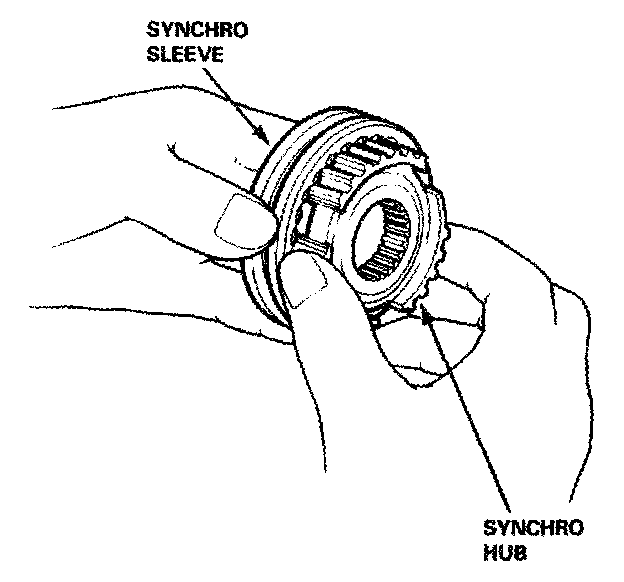 2. Install each synchro hub in its mating synchro sleeve, and check for freedom of movement.