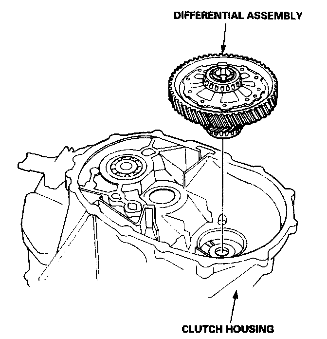 1. Install the differential assembly in the clutch housing.