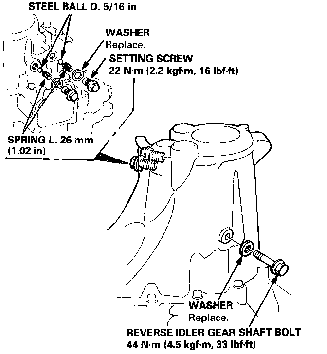 16. Install the reverse idler gear shaft bolt.