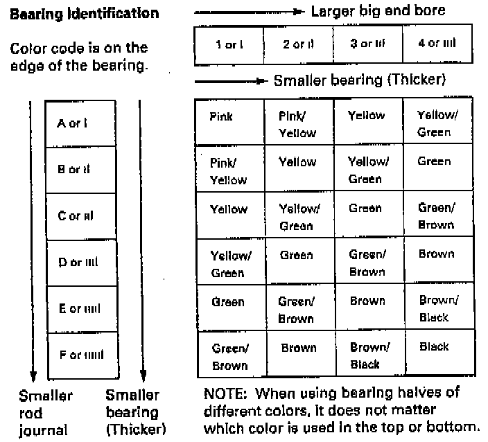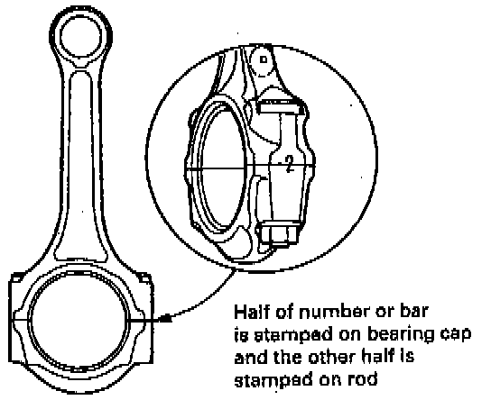 Numbers or Bars have been stamped on the side of each connecting rod as a code for the size of the big end. Use them, and the letters or bars stamped on the crank (codes for rod journal size), to choose the correct bearings.