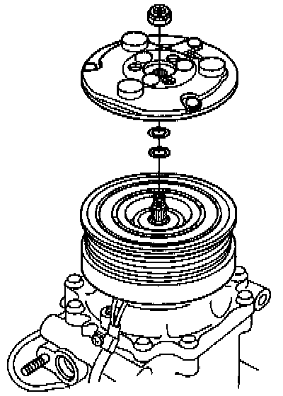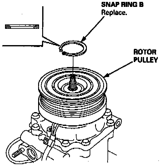 - Be careful not to damage the compressor body and rotor pulley during removal/installation.