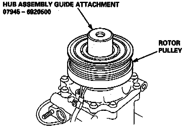 If the rotor pulley does not press on straight, remove it and check the rotor pulley and compressor boss for burrs or damage.