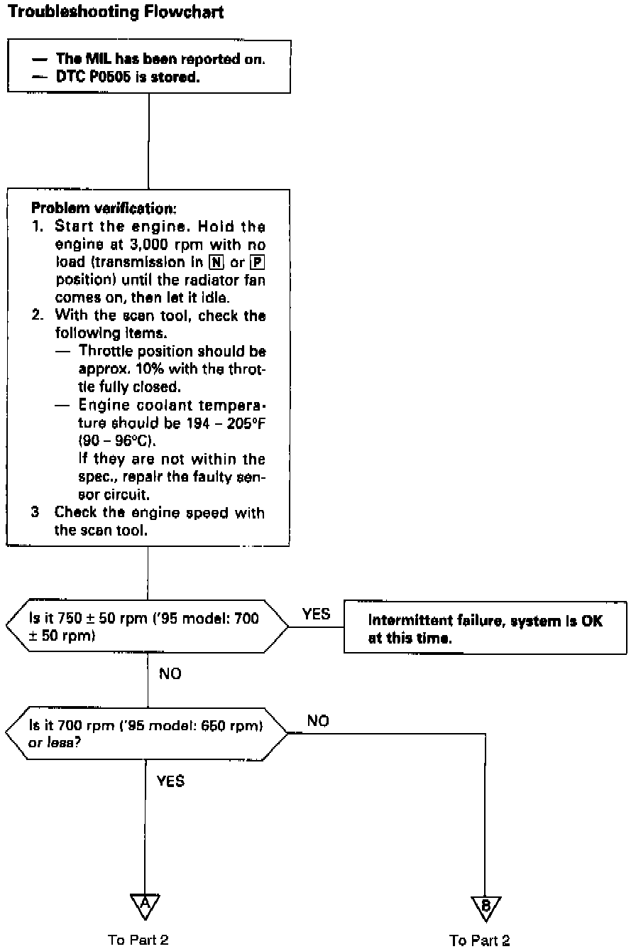 NOTE: If DTC P15O8 is stored at the same time as DTC P0505, troubleshoot DTC P15O8 first, then troubleshoot DTC P0505.