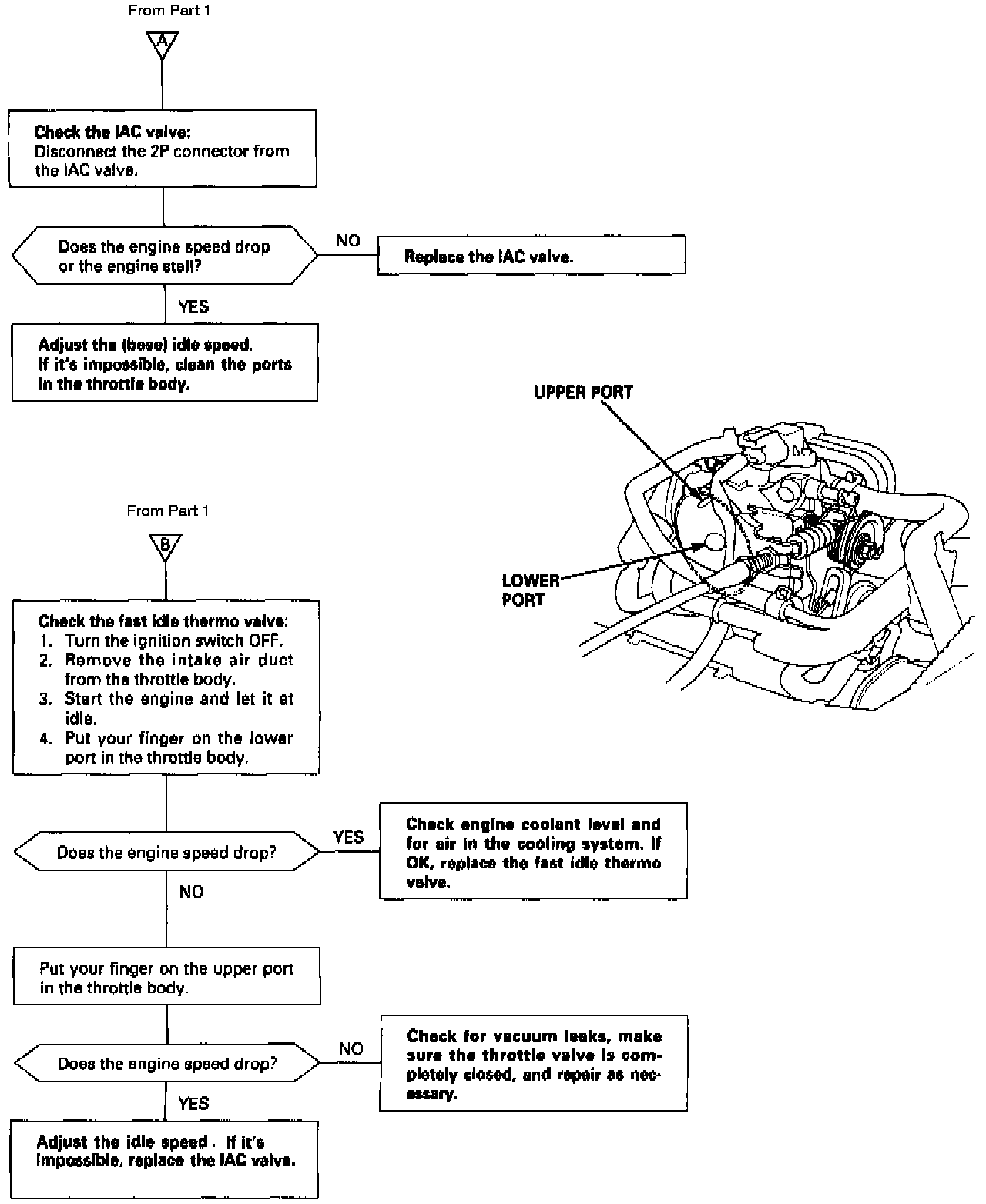 ^ Throttle body: clogged port, improper adjustment