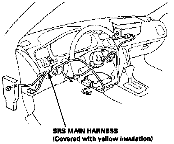 - ALL SRS WIRE HARNESSES ARE COVERED WITH YELLOW INSULATION. BEFORE YOU DISCONNECT ANY PART OF AN SRS WIRE HARNESS, DISCONNECT THE AIRBAG CONNECTORS.
