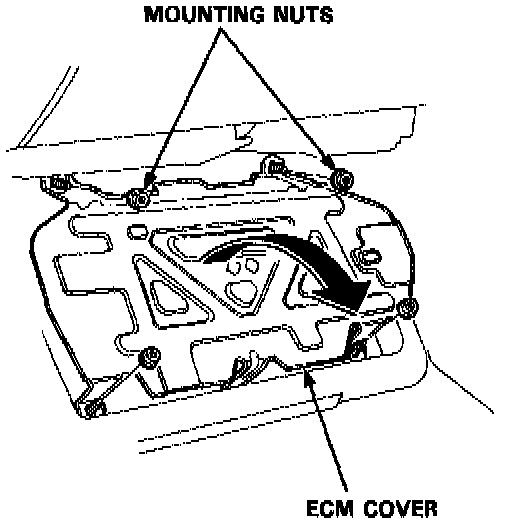 3. Remove the ECM cover mounting nuts and turn the TCM over.