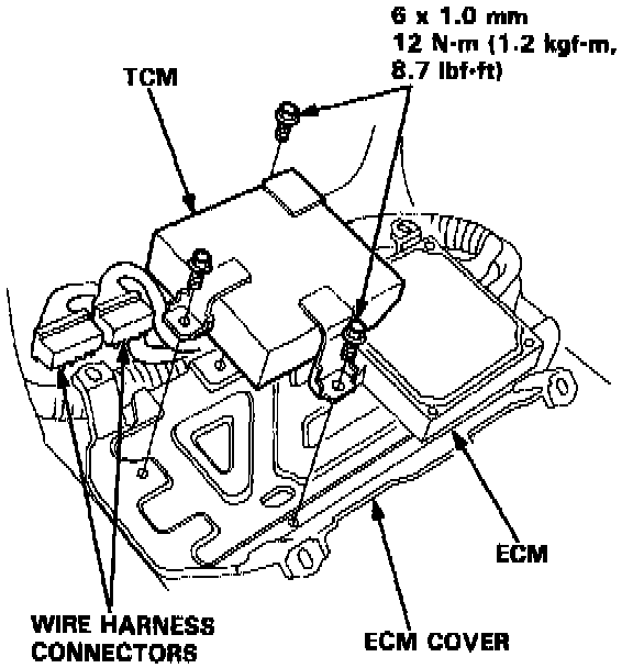 4. Remove the TCM, and disconnect the wire harness connectors.