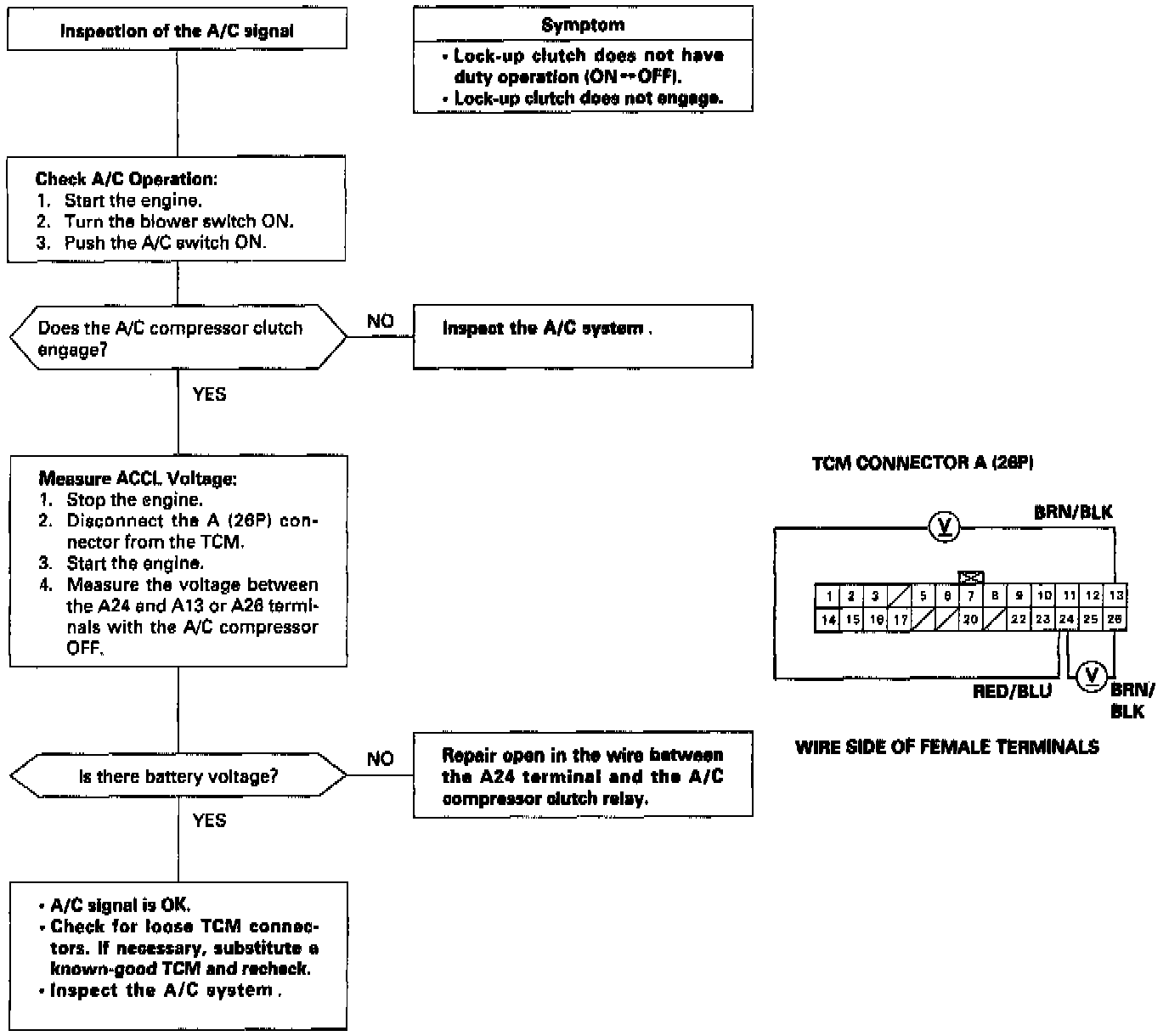 A/C Signal Inspection (Lock-Up Clutch Does Not Engage)