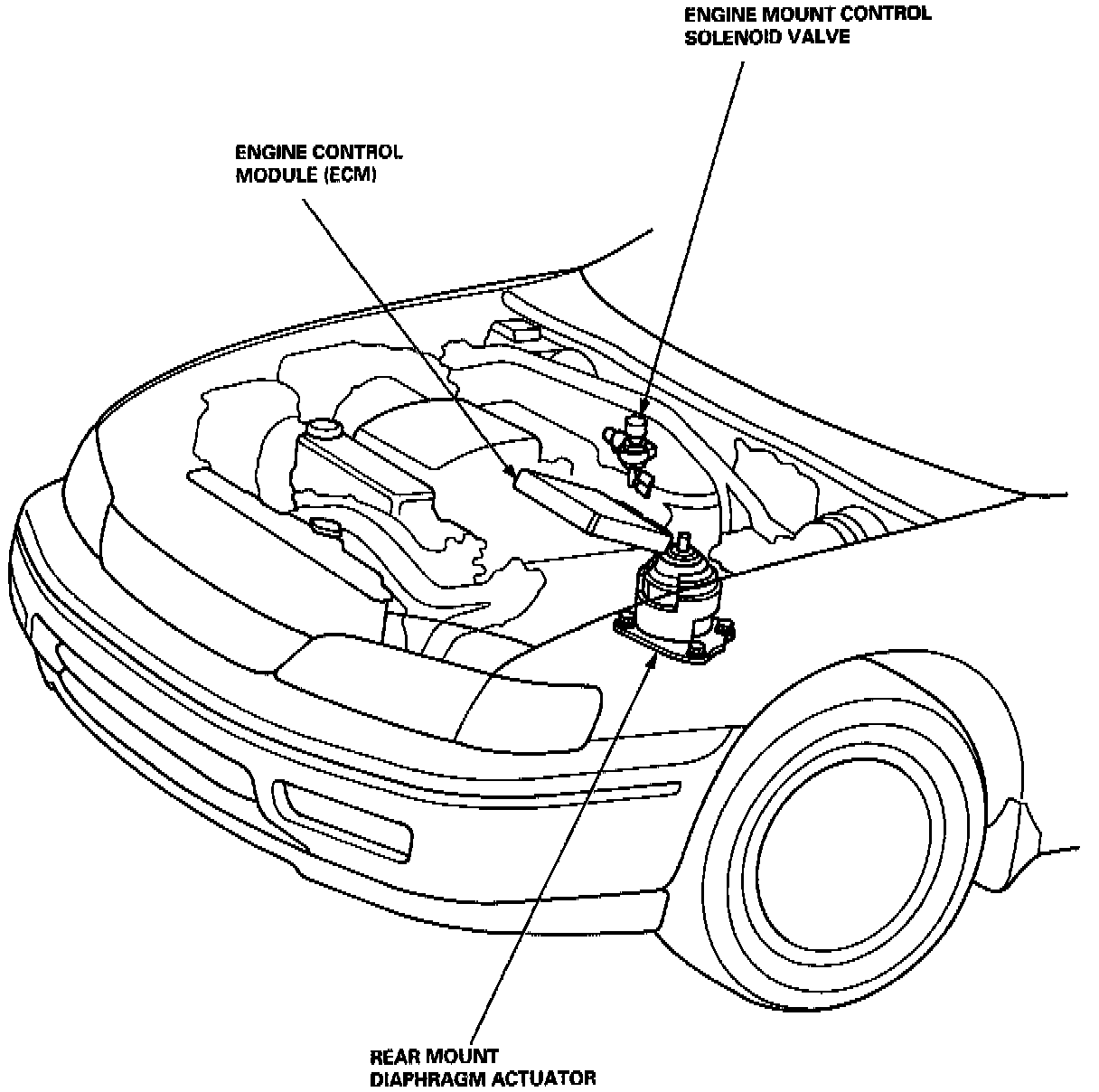 The Engine Mount Control Unit is incorporated into the Engine Control Module.