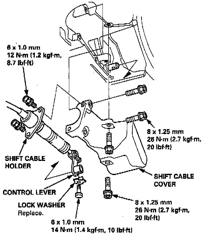 10. Check the cable adjustment after installing the shift cable.