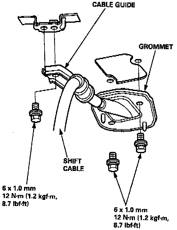 9. Install the shift cable in the reverse order of removal.