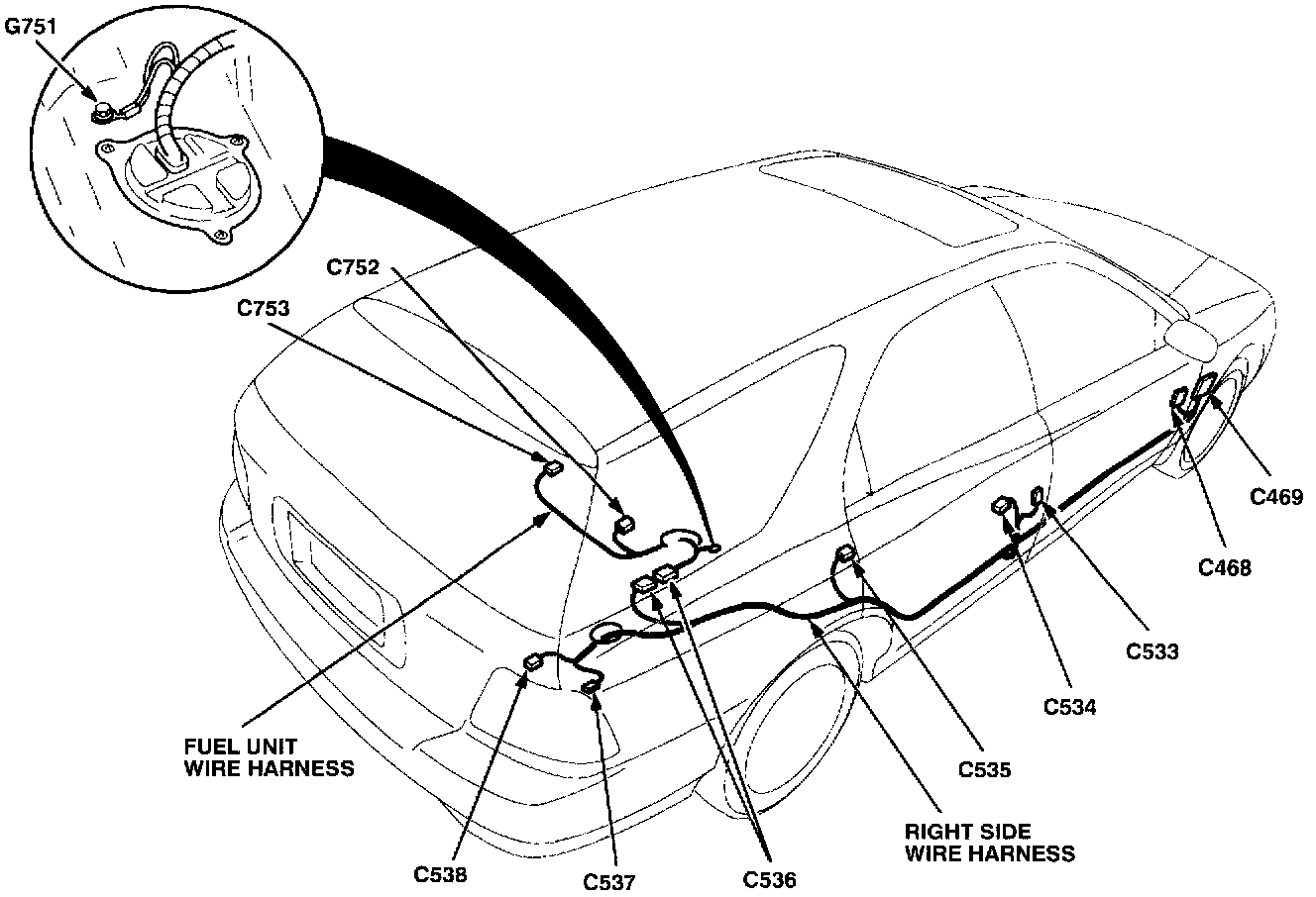 Right Side Wire Harness And Fuel Unit Wire Harness: