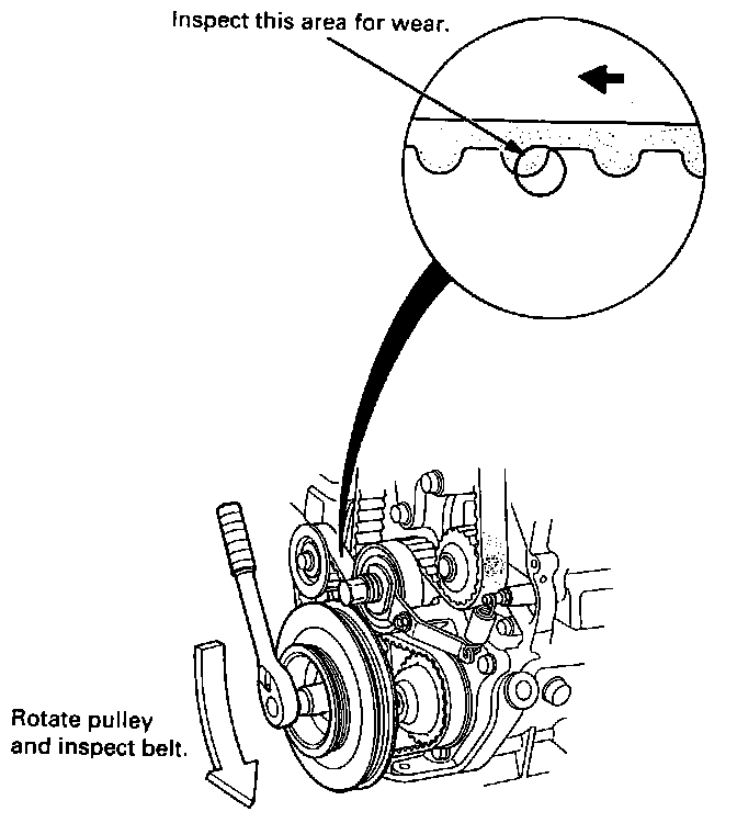 5. Inspect the timing belt for cracks and oil or coolant soaking.