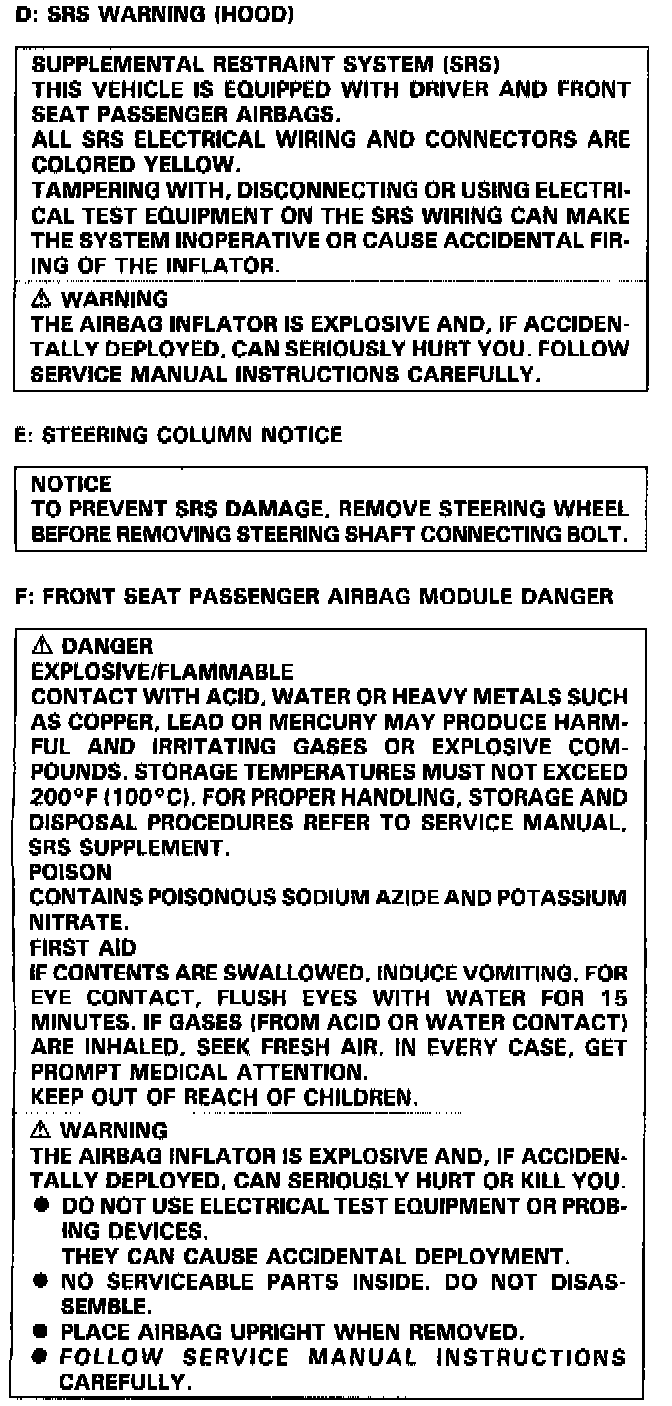 UNDERHOOD WARNING LABELS